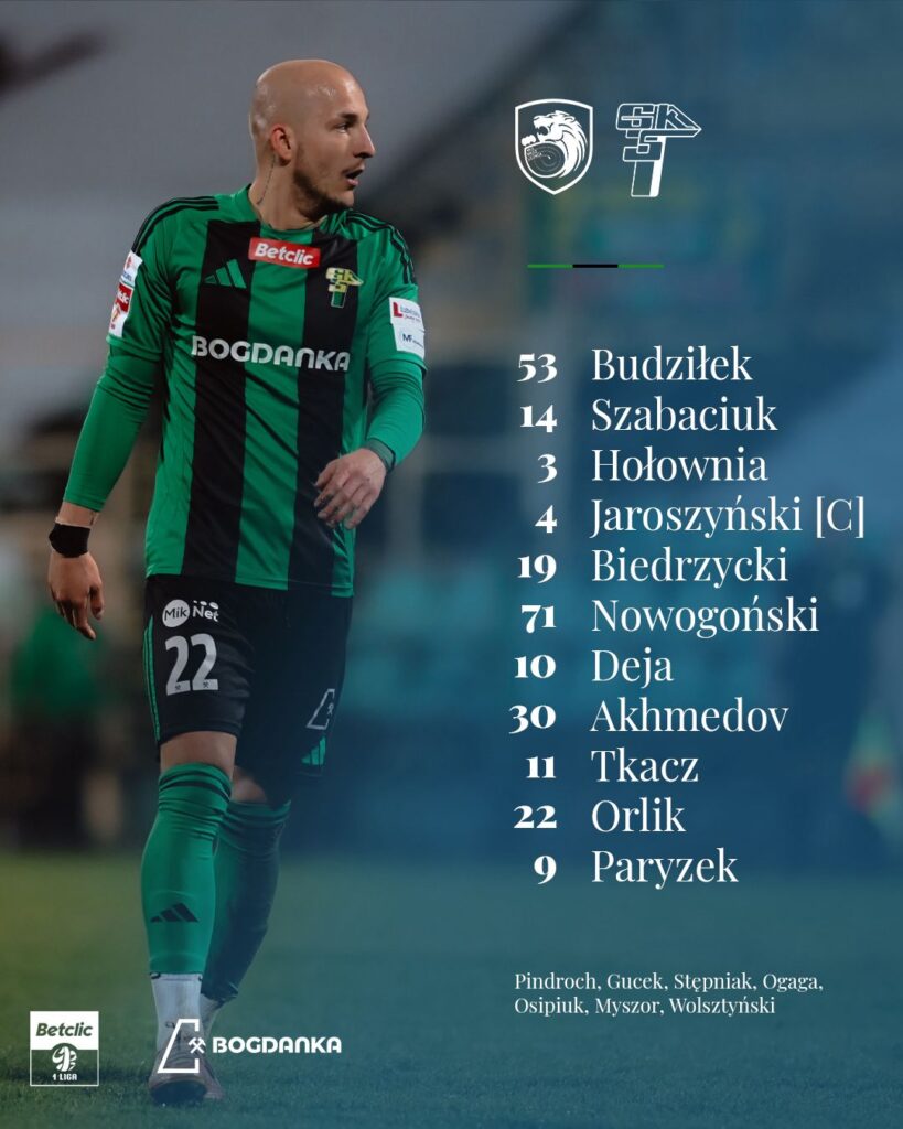 W 29. kolejce Betclic 1. Ligi piłkarze Górnika Łęczna zmierzą się na wyjeździe z Miedzią Legnica. Trener zielono-czarnych Jurij Szatałow przeprowadził jedną zmianę względem ostatniego spotkania z Chrobrym Głogów. Pauzującego za kartki Branislava Spacila zastąpił Patryk Paryzek. Ponadto do kadry meczowej zielono-czarnych powrócili David Ogaga, Jakub Myszor i Jan Stępniak.